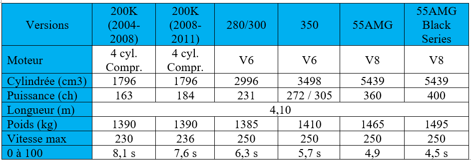NB : le SLK R172 existe aussi en version 300, un quatre cylindres de 1991 cm3 développant 245 cv dotée d’une boîte automatique 9 rapports.