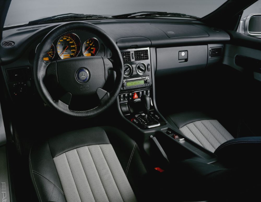 Le Vario-Roof est l’un des éléments qui ont fait le succès de la SLK R170. Ce toit rigide articulé, électro-hydraulique, peut être ouvert ou fermé en environ 25 secondes — une performance remarquable pour l’époque — et offre le confort d’un coupé ainsi que la liberté d’un cabriolet avec une isolation phonique et thermique supérieure à celle des cabriolets classiques à capote souple.